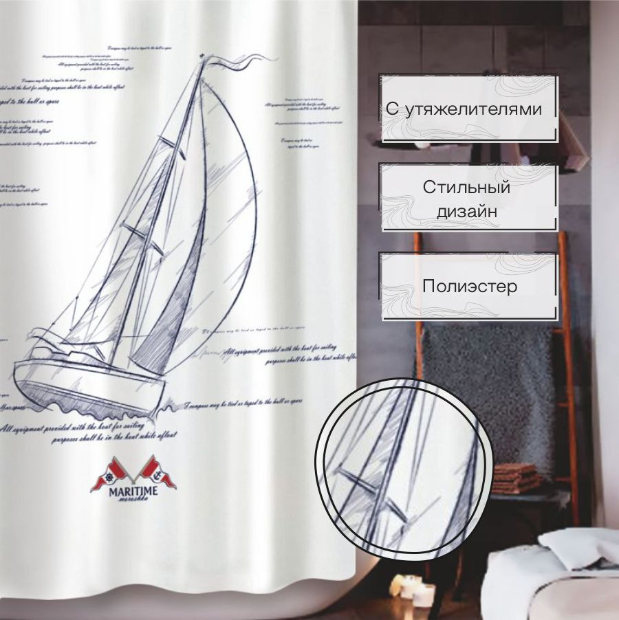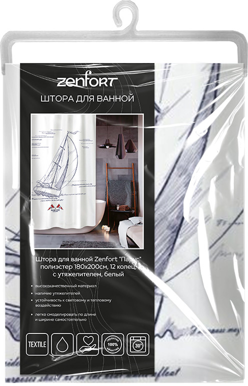 Zenfort Штора для ванной «Парус»-30% +67 качество принт аккуратный пошив утяжелитель снизу