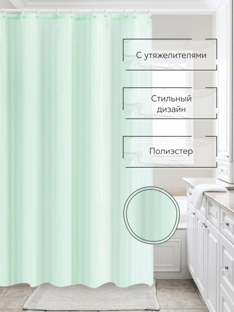 Шторы предотвращают попадание брызг воды, мыльной пены на пол и стены ванной комнаты. Благодаря наличию утяжелителей штора не прилипает к ванне и телу. Штора для ванной имеет металлические люверсы (12шт), которые защищают шторы от случайного разрыва в местах навешивания. В комплекте идут 12 пластиковых колец. Штора выполнена из водонепроницаемого материала — полиэстер с утяжелителем. Он плотный, прочный, обладает водоотталкивающими свойствами, идеально подойдет для ванны, рисунок не выцветает и не тускнеет.