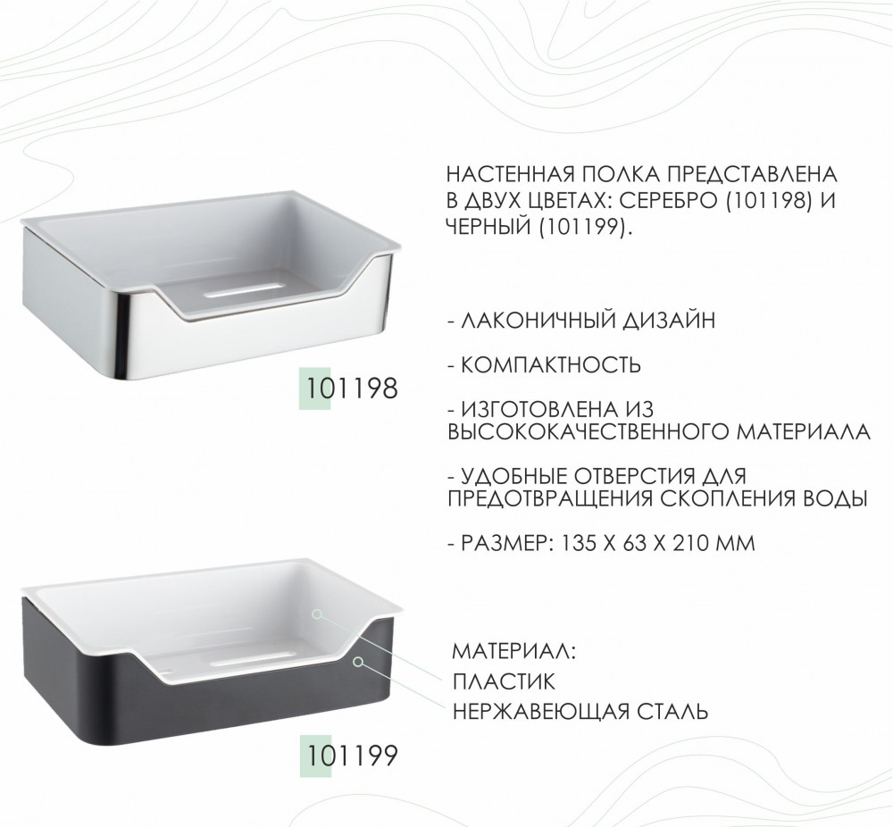 💳 Оплатить за товар можно при получении 🇰🇿 Есть бесплатная доставка по Казахстану от 1 дня 🎁 Копите бонусы с каждой покупки Настенная 1-ярусная полка не только украсит интерьер, но и станет незаменимым помощником в организации и хранении самого необходимого. Имеет компактный размер, оптимально подойдет даже для небольших помещений. Имеет съемный внутренний контейнер, который легко мыть. |