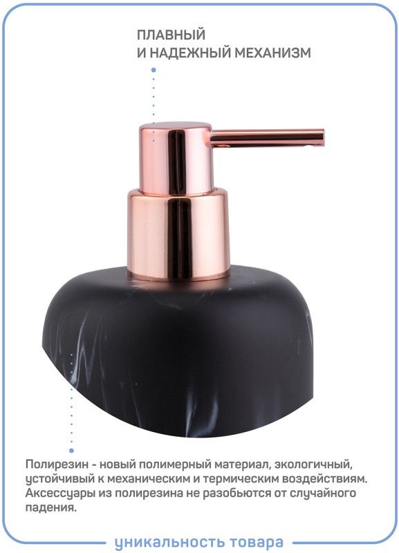 💳 Оплатить за товар можно при получении 🇰🇿 Есть бесплатная доставка по Казахстану от 1 дня 🎁 Копите бонусы с каждой покупки Серия: Marble Дозатор Marble объемом 330 мл. имеет форму цилиндра с мягкими краями. Внешне аксессуар кажется выполненным из черного мрамора, но на ощупь он оказывается мягким и приятным, потому что материал полирезин имеет низкую теплопроводность. Создается интересная тактильная игра ощущений. Фурнитура в цвете розового золота. Входит в состав коллекции Marble. |
