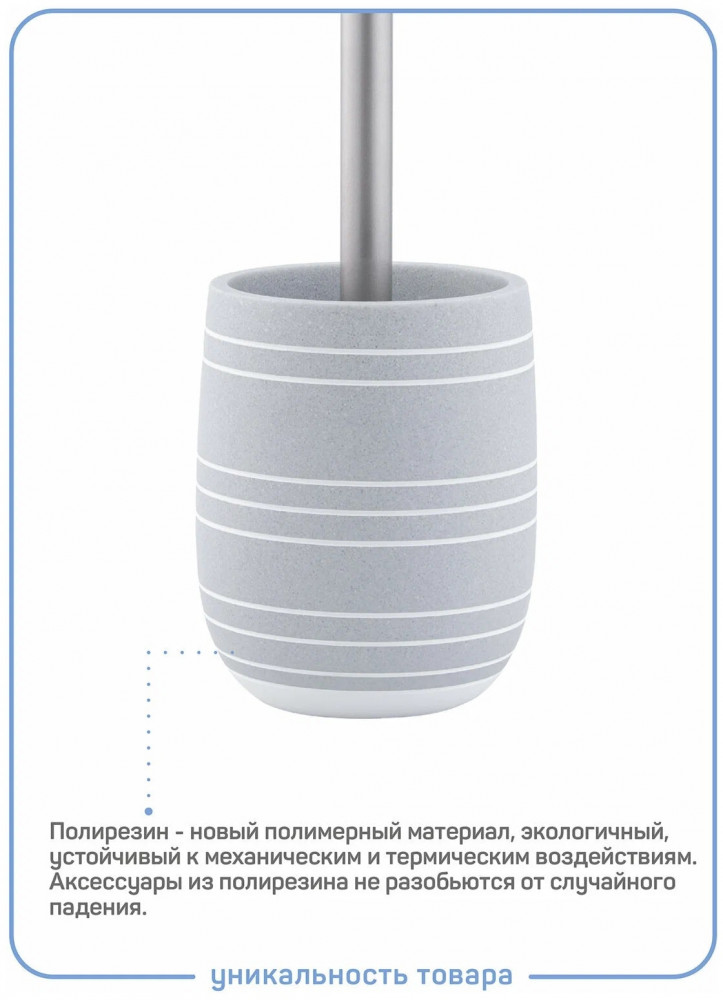 💳 Оплатить за товар можно при получении 🇰🇿 Есть бесплатная доставка по Казахстану от 1 дня 🎁 Копите бонусы с каждой покупки Серия: Granit Ерш для унитаза со стаканом Granit выполнен в виде цилиндра с мягкими краями. Фурнитура приглушенного серебряного цвета. Главное преимущество данного аксессуара — антибактериальные свойства материала, из которого он изготовлен. Благодаря непористой структуре материал устойчив к появлению плесени и микробов. Входит в состав коллекции Granit. |