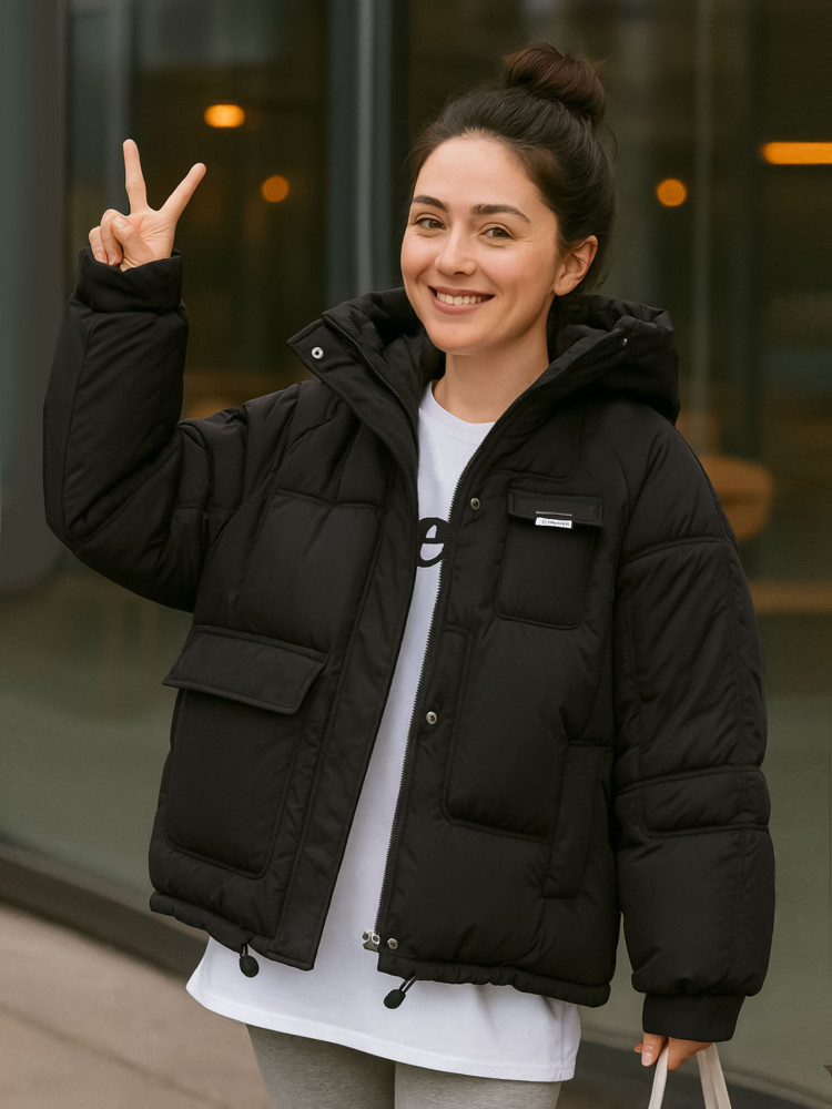 Девочки, ни на какие минус 30 эта куртка и близко не годится - если что то планировал купить, как зимнюю - нет, нет, и еще раз нет. Максимум - на + 15.. Тонкая, легкая курка на синтепоне - нет там никакого халафайбера даже близко, не поленилась, перевела этикетку с китайского.. Рукава короткие - вот откровенно короткие. И это я купила на размер больше, чем ношу обычно - ношу 46, купила 48. Так что если вам на весну теплую - ок, на зиму - нет..