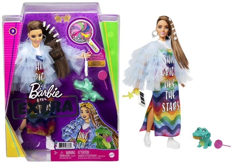 Кукла «BARBIE Barbie Extra в сиреневом пальто»В данный момент этот товар отсутствует в продаже. Возможно, у нас найдется аналогичный или похожий товар здесь. Куклы Барби Экстра - воплощение смелых модных образов в сочетании с яркими цветами! Куклы из серии Барби Экстра способствуют развитию творческого самовыражения детей через увлекательные игры с яркими модными аксессуарами. Блестки, мармеладные мишки, смайлики и необычные волосы - все эти детали привносят в игру особую атмосферу, куда бы вы не пошли. Цвета и дизайн могут отличаться от изображений. Кукла не может стоять без опоры.**В комплекте**- 1 кукла, 1 питомец и 15 аксессуаров**Характеристики**- Содержит мелкие детали, не для детей до 3-х лет |