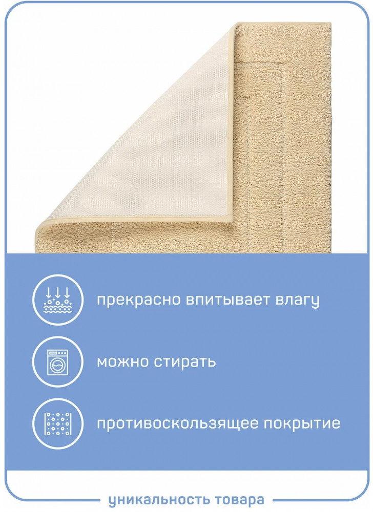 Размер коврика очень хороший, то что нужно. Пушистый, приятно ступать босыми ногами.