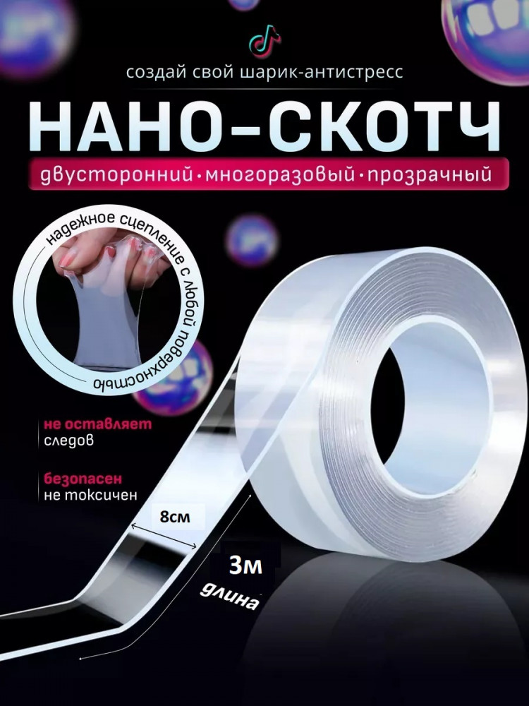 Нано скотч прозрачный двусторонний — это практичное и удобное решение для тех, кто ищет надежный и не заметный способ крепления предметов. Выбор этого товара позволит вам облегчить повседневные задачи и сэкономить время на монтаже и демонтаже. Двусторонний термостойкий нано скотч идеально подходит для творчества, с ним получаются идеальные шарики антистресс, которые в тренде у детей.