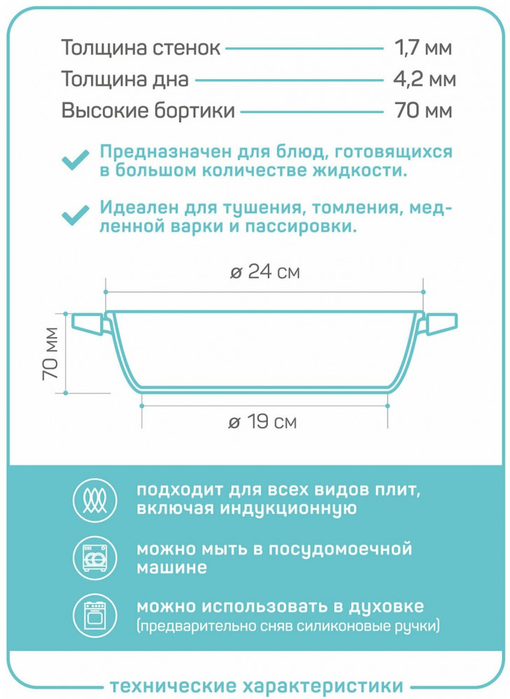💳 Оплатить за товар можно при получении 🇰🇿 Есть бесплатная доставка по Казахстану от 1 дня 🎁 Копите бонусы с каждой покупки Серия: Шеф Андреа Жаровня-сотейник из литого алюминия с антипригарным покрытием Pfluon «Шеф Андреа» подходит для длительной термической обработки любых блюд. Прочное дно и корпус сотейника устойчивы к деформации и обеспечивают равномерный нагрев продуктов. Двухслойное антипригарное покрытие стандарта Pfluon является максимально экологичным за счет отсутствия в составе вредных кислот (PFOA). Покрытие толщиной 25-35 мкр выдерживает более 3000 циклов готовки. Антипригарное покрытие исключает взаимодействие металла и продуктов, поэтому в сотейнике можно тушить, томить и пассеровать любые блюда. |