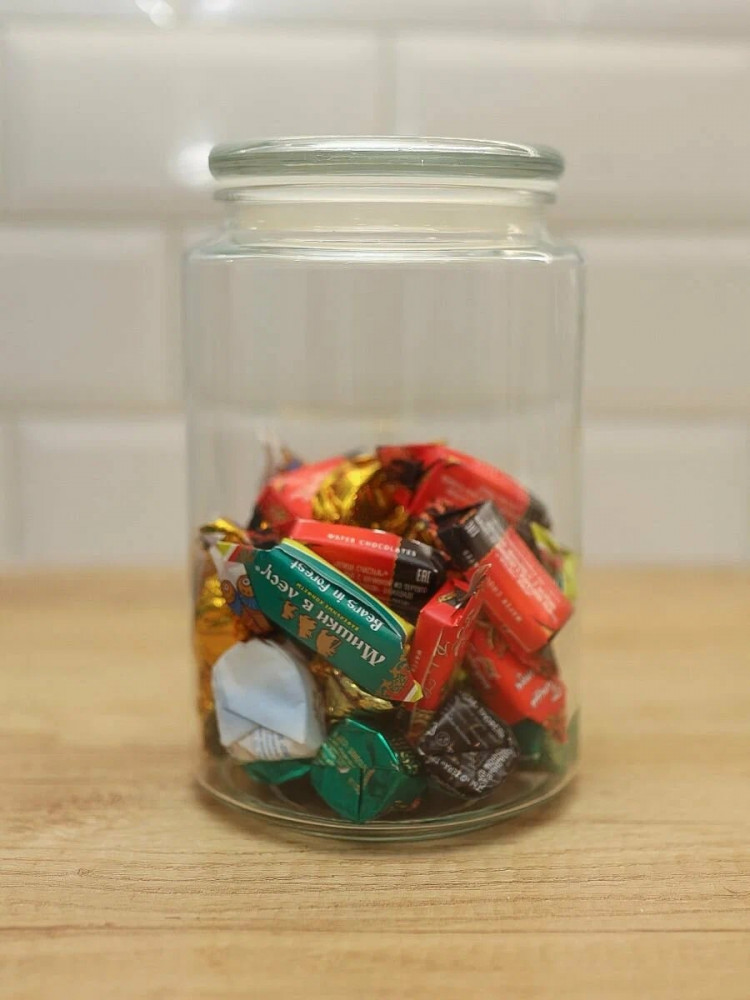 Красивая банка, взяла для муки, 2 кг почти влезло.