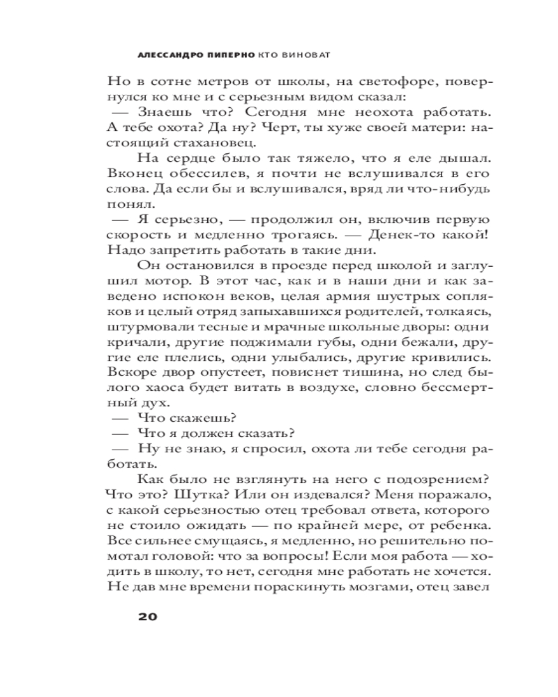 💳 Оплатить за товар можно при получении 🇰🇿 Есть бесплатная доставка по Казахстану от 1 дня 🎁 Копите бонусы с каждой покупки Серия: Corpus (roman) Роман «Кто виноват» — рассказанная от первого лица история взросления главного героя, мальчика, который вместе с родителями живет на окраине Рима. Семья еле сводит концы с концами, ведет замкнутый образ жизни и не общается с родственниками. Если о родне со стороны отца что-то известно, то прошлое матери покрыто густым туманом. Однако он рассеивается, когда на еврейскую Пасху герой попадает в дом ее богатых родственников. Эта встреча становится важной вехой в судьбе подростка, она приносит с собой перемены: нью-йоркские каникулы, мучительное чувство любви, а следом — страшную трагедию и новую жизнь в буржуазной среде. Престижная частная школа, приятные знакомства, большие возможности тем не менее не избавляют молодого человека от тревожных размышлений. Кто виноват в постигших его семью несчастьях? Этот вопрос будет мучить героя долгие годы. На суд совести попадут многие — и прежде всего он сам. |