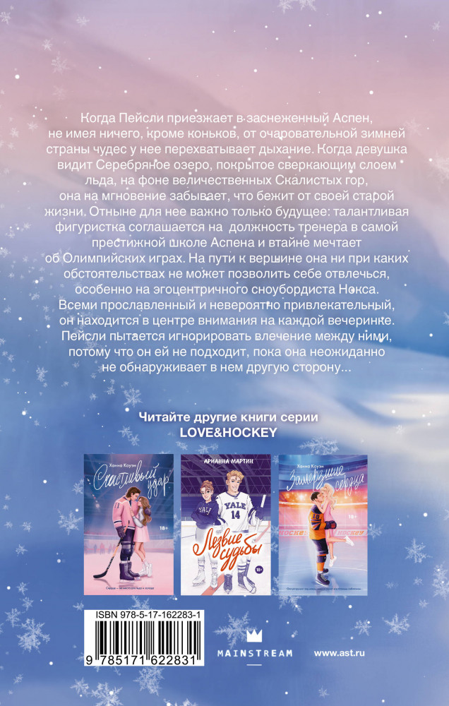 💳 Оплатить за товар можно при получении 🇰🇿 Есть бесплатная доставка по Казахстану от 1 дня 🎁 Копите бонусы с каждой покупки Серия: Love&Hockey Когда Пейсли приезжает в заснеженный Аспен, не имея ничего, кроме коньков, от очаровательной зимней страны чудес у нее перехватывает дыхание. Когда девушка видит Серебряное озеро, покрытое сверкающим слоем льда, на фоне величественных Скалистых гор, она на мгновение забывает, что бежит от своей старой жизни. Отныне для нее важно только будущее: талантливая фигуристка соглашается на должность тренера в самой престижной школе Аспена и втайне мечтает об Олимпийских играх. На пути к вершине она ни при каких обстоятельствах не может позволить себе отвлечься, особенно на эгоцентричного сноубордиста Нокса. Всеми прославленный и невероятно привлекательный, он находится в центре внимания на каждой вечеринке. Пейсли пытается игнорировать влечение между ними, потому что он ей не подходит, пока она неожиданно не обнаруживает в нем другую сторону... |