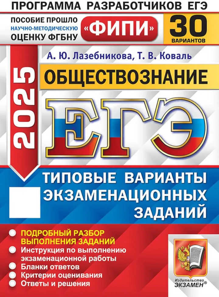 ЕГЭ 2025. Обществознание. 30 вариантов. Типовые варианты экзаменационных заданийТатьяна Викторовна Коваль, Анна Юрьевна Лазебникова +136