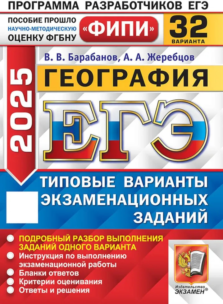 ЕГЭ 2025. География. 32 варианта. Типовые варианты экзаменационных заданийАндрей Анатольевич Жеребцов, Вадим Владимирович Барабанов -25% +146