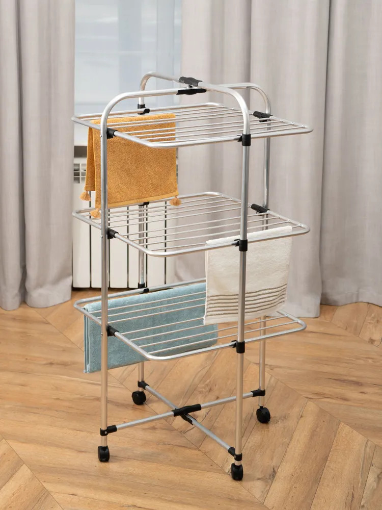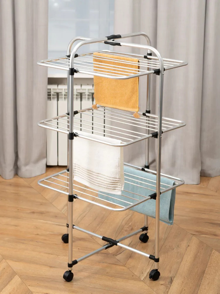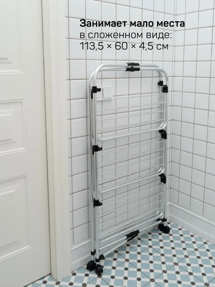 очень удобная компактная сушилка, на колесиках, складывается и занимает мало места