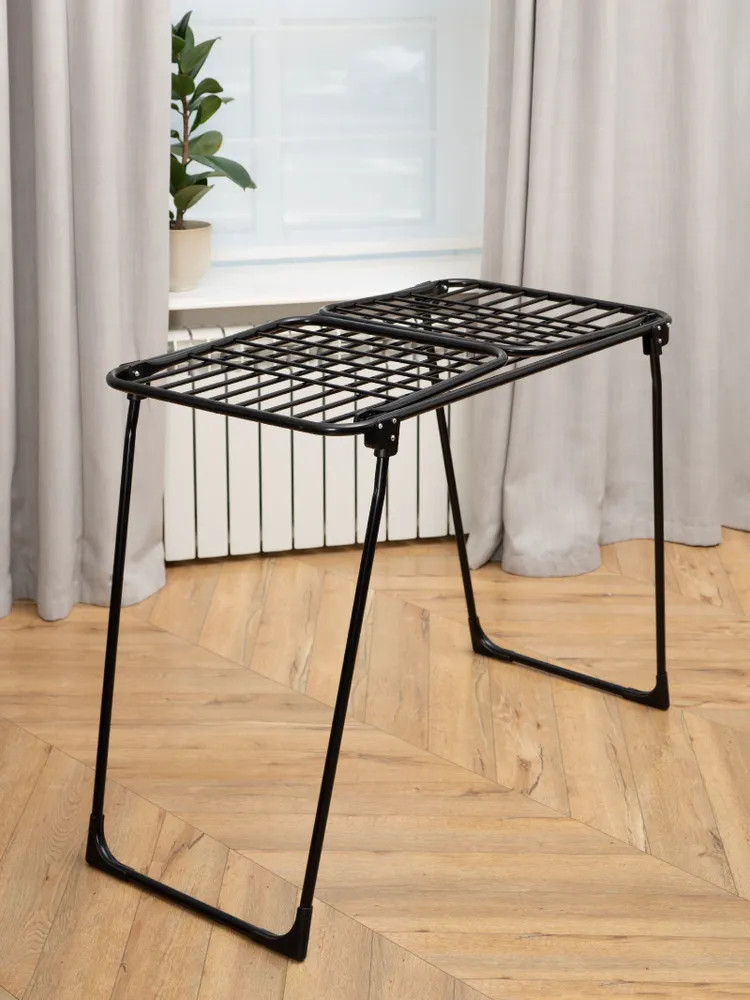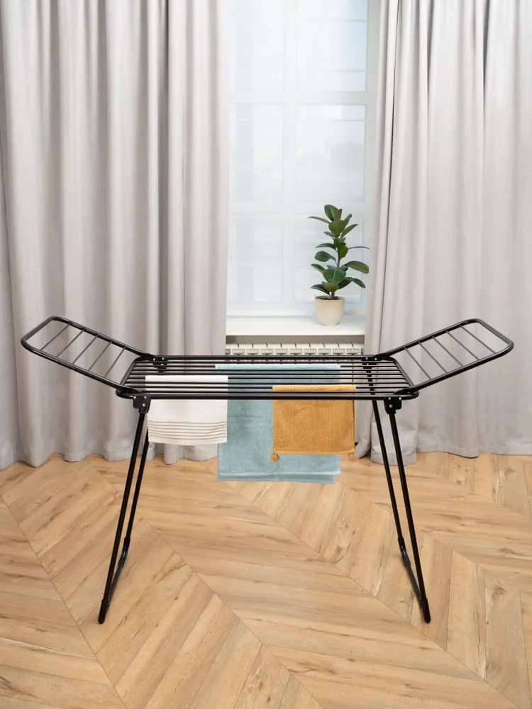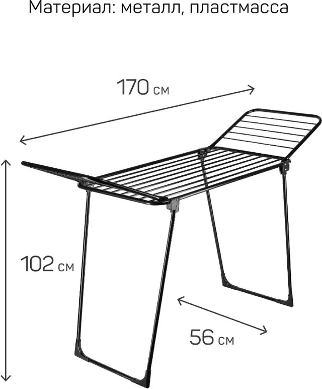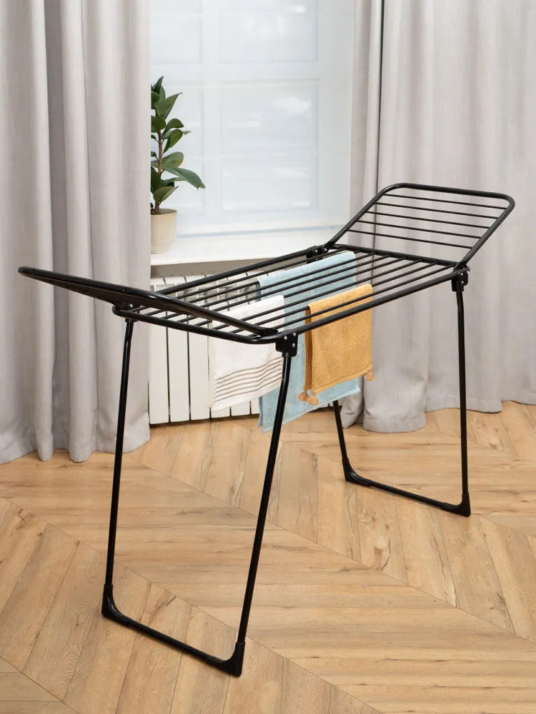 Напольная складная металлическая сушилка для белья Ордос позволяет компактно высушить большое количество белья. Не требует сборки, готова к использованию сразу из коробки. Перекладины сделаны из трубок, что позволяет избежать загибов на ткани и лишней глажки. В сложенном виде она легко поместится за дверью или под кроватью, зато разложенная она вмещает объем двух полных загрузок стиральной машины. Эргономичная и прочная конструкция. Металлическая конструкция выдерживает вес белья до 16 кг. Можно размещать на балконе или террасе.
