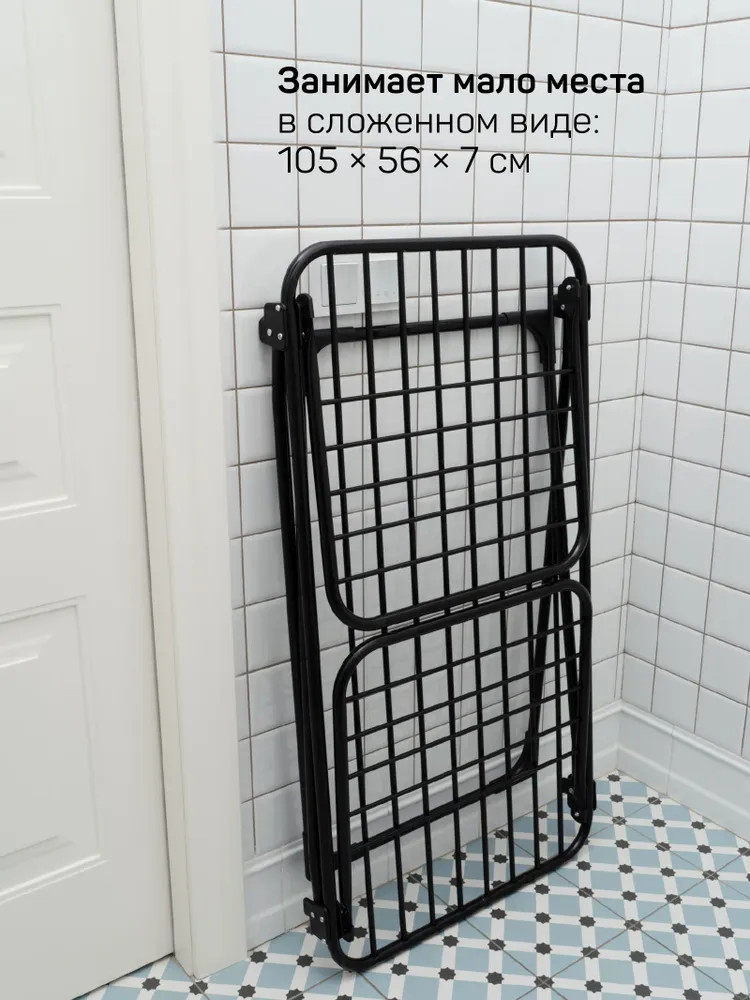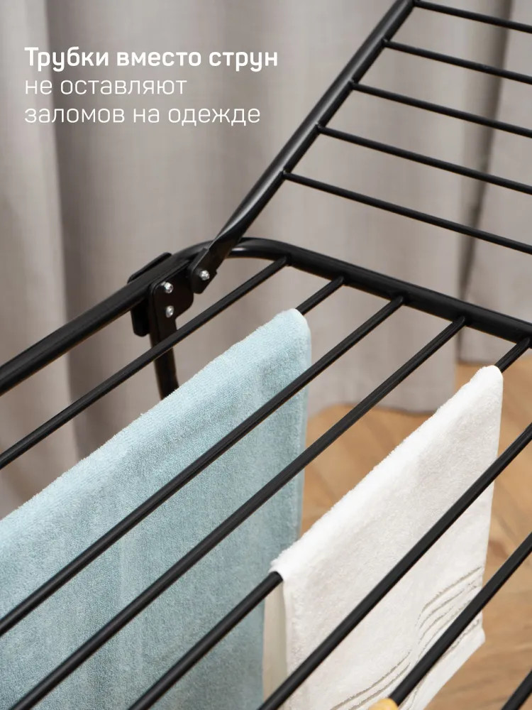 Не ржавеет от влаги и не портит белье пятнами. Бельевая сушилка с трубками не оставляет заломов и более бережна к тянущимся и деликатным тканям. В сложенном виде поместится в узкие пространства за шкафами, дверьми, в гардеробные, кладовые вдоль стен. Сушилка имеет пластиковые подставки, поэтому защищают пол от царапин. Удобна для мамочек: установка для просушки вещей безопасна для детей и животных.