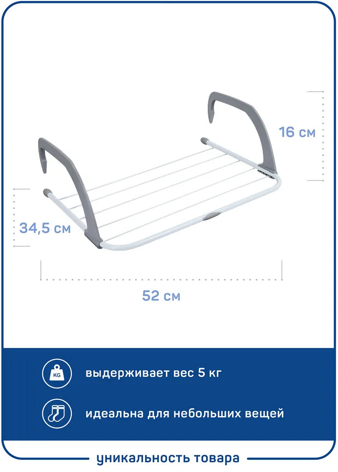 💳 Оплатить за товар можно при получении 🇰🇿 Есть бесплатная доставка по Казахстану от 1 дня 🎁 Копите бонусы с каждой покупки Навесная сушилка для белья «Сушкоритель» это сочетание компактности, мобильности и функциональности. Сушилка для белья подвесная складная универсальна. Зимой может использоваться на батареях и радиаторах отопления зимой, для сушки для белья на балконах и в ванных — летом. Сушилка имеет шесть перекладин, длина струн — 3м. Сушилка складная — когда белье высохнет, ее можно сложить и убрать в любое узкое место: под ванную, за стиральную машинку, в шкаф. |