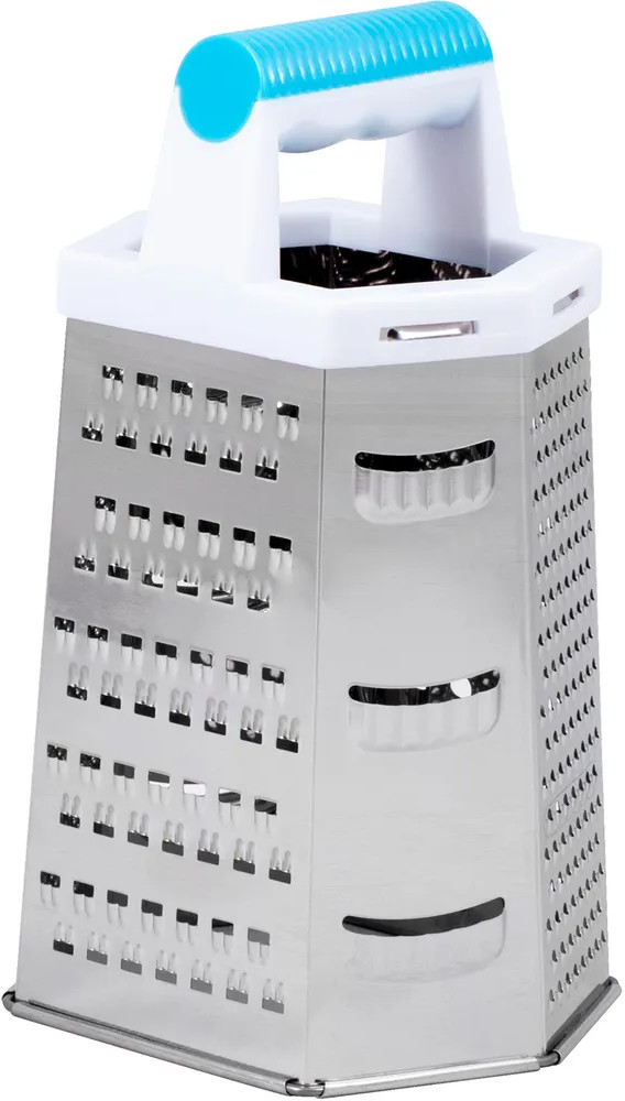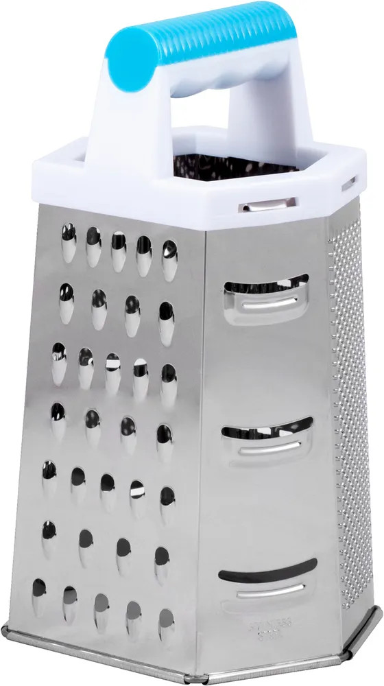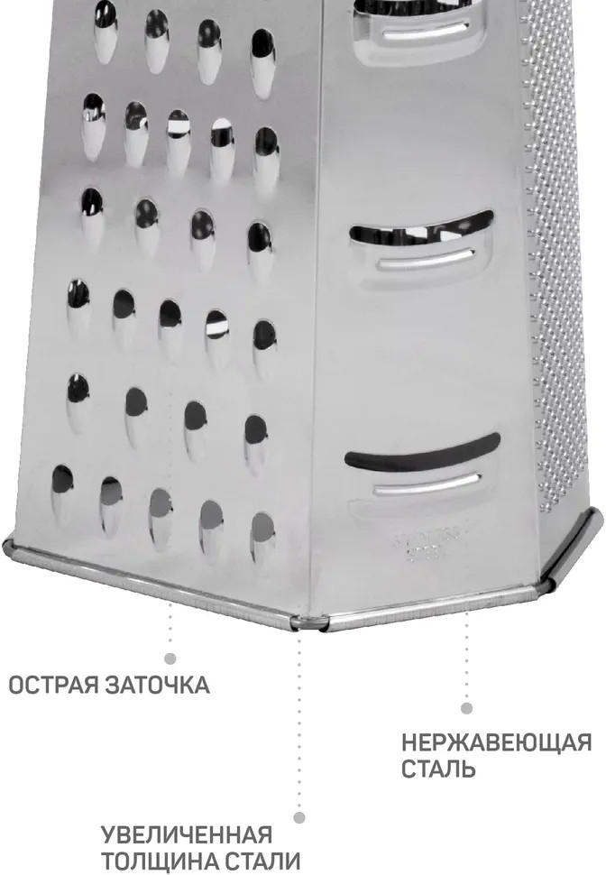 Классическая ручная четырехгранная терка для моркови, овощей и сыра — из нержавеющей стали 0.25 мм и алмазной заточкой. Надежная и острая. Компактные размеры посуды не займут много места в кухонном шкафу.