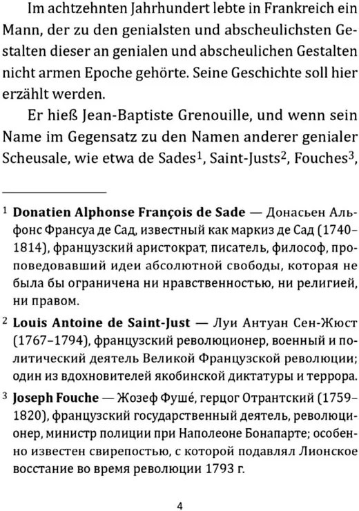 💳 Оплатить за товар можно при получении 🇰🇿 Есть бесплатная доставка по Казахстану от 1 дня 🎁 Копите бонусы с каждой покупки Серия: Moderne Prosa Абсолютный бестселлер Патрика Зюскинда содержит в себе элементы мелодрамы и триллера. Книга была успешно экранизирована и полюбилась читателям всего мира. Молодой и талантливый парфюмер Жан-Батист Гренуй сводит с ума высший свет Парижа своими изысканными ароматами. Но его цель — стать непревзойденным, создать идеальное сочетание запахов, доселе не известных человечеству. В погоне за своей мечтой он дошел до последней черты. Рискнет ли он заплатить наивысшую цену за свой лучший аромат? Неадаптированный текст романа снабжен комментариями и словарем. |
