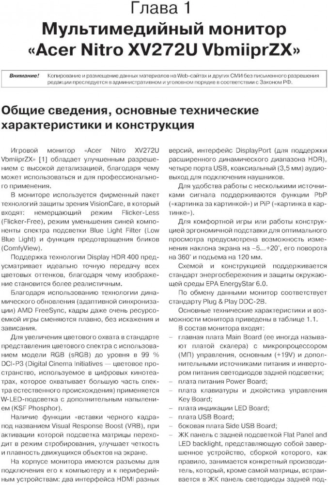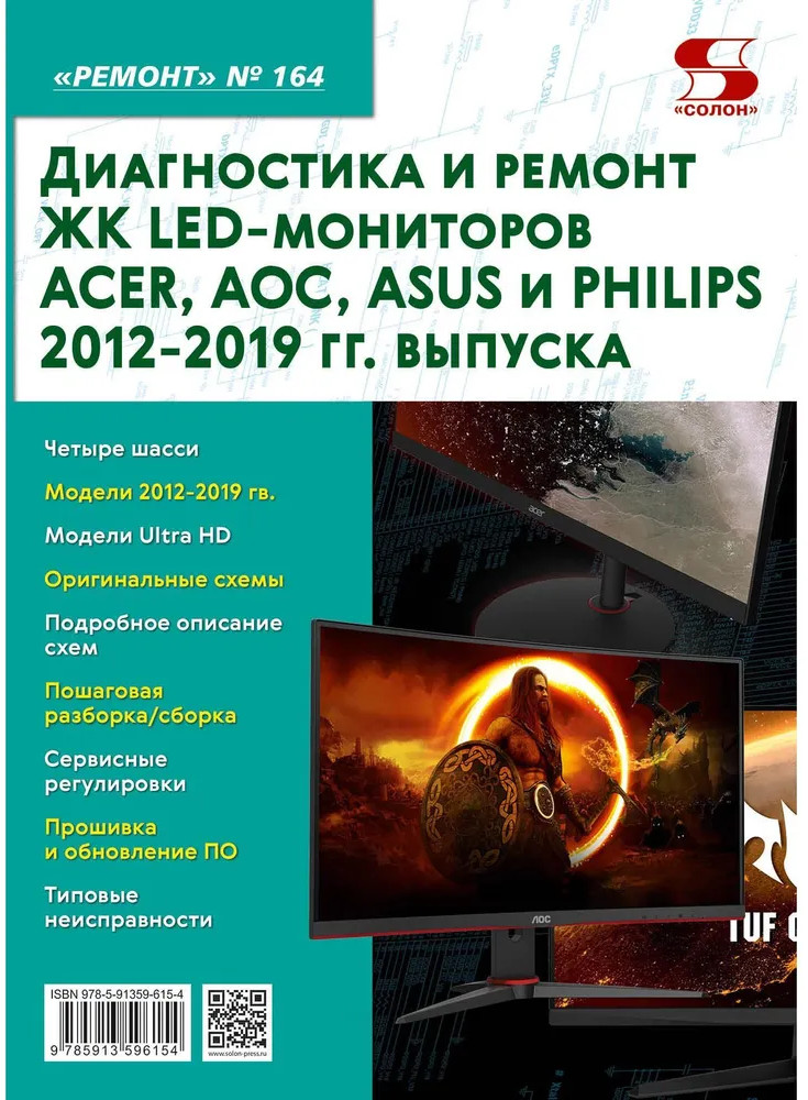 Серия: Ремонт В очередной книге популярной серии описаны современные жидкокристаллические мониторы 2012–2019 гг. выпуска различных производителей и торговых марок, представленных на отечественном рынке: ACER, AOC, ASUS и PHILIPS. |