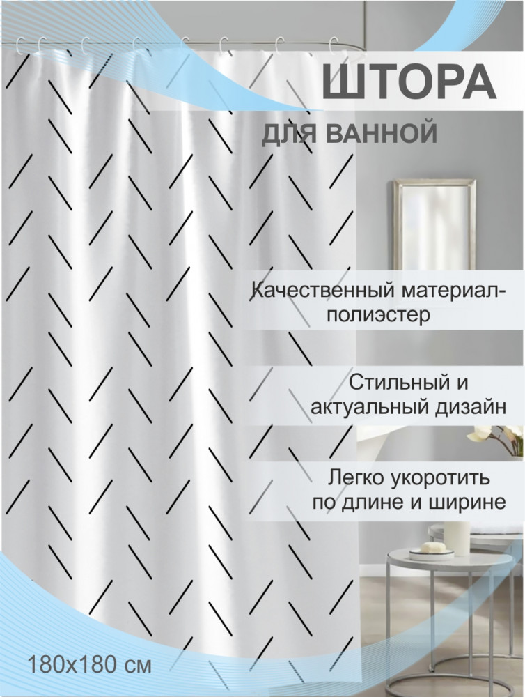 💳 Оплатить за товар можно при получении 🇰🇿 Есть бесплатная доставка по Казахстану от 1 дня 🎁 Копите бонусы с каждой покупки Штора для ванной — незаменимый и практичный аксессуар современной ванной. Шторы предотвращают попадание брызг воды, мыльной пены на пол и стены ванной комнаты. Штора для ванной имеет металлические люверсы (12 шт), которые защищают шторы от случайного разрыва в местах навешивания. В комплекте идут 12 пластиковых колец. Штора выполнена из водонепроницаемого материала — полиэстер. Он плотный, прочный, обладает водоотталкивающими свойствами, идеально подойдет для ванны, не тускнеет. |