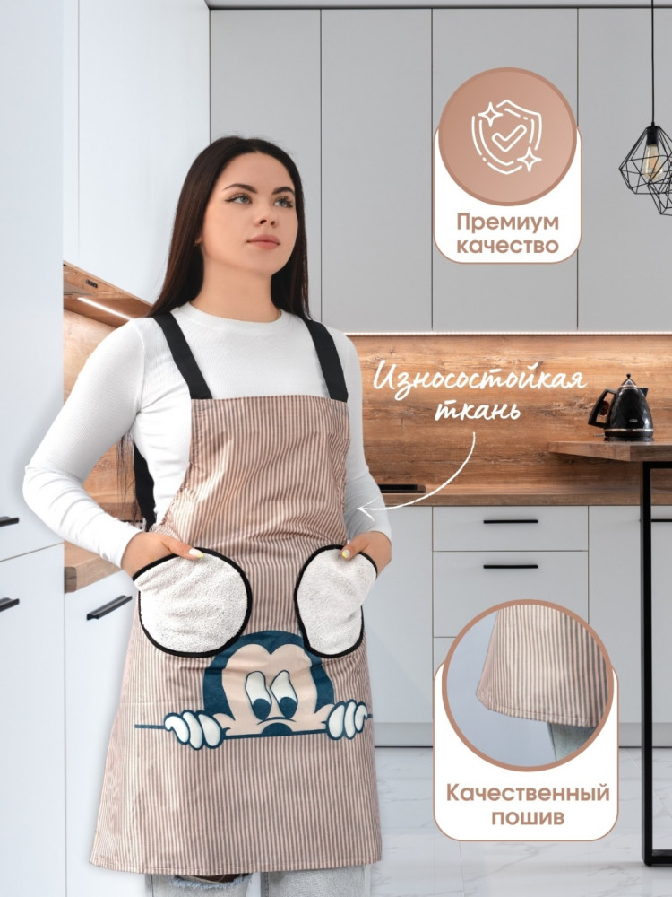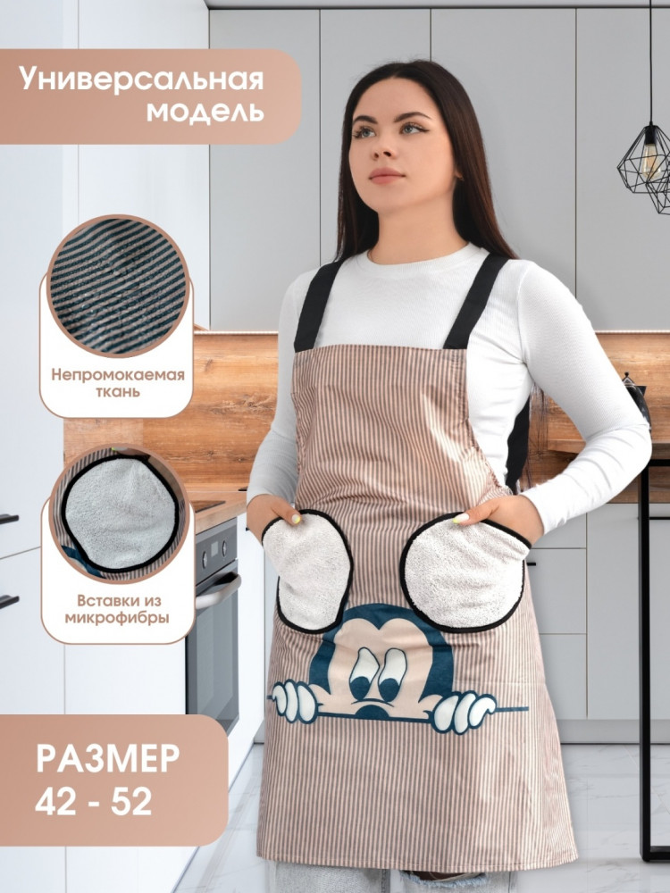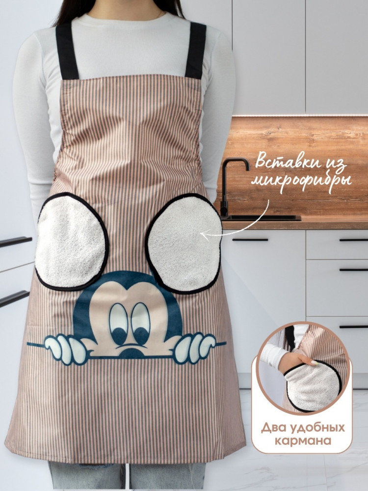 Фартук с изображением знаменитого Микки Мауса — яркий и стильный аксессуар, который станет настоящим украшением вашей кухни или мастерской. Выполненный из качественного полиэстера, он сочетает в себе удобство, прочность и легкость ухода. Этот фартук станет отличным выбором для повседневных домашних дел, кулинарных экспериментов или в качестве оригинального подарка для фанатов Микки Мауса.