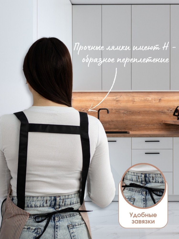 • комфорт: регулируемый ремешок на шее и поясе позволяет удобно подогнать фартук под размер, обеспечивая комфорт при длительном ношении;