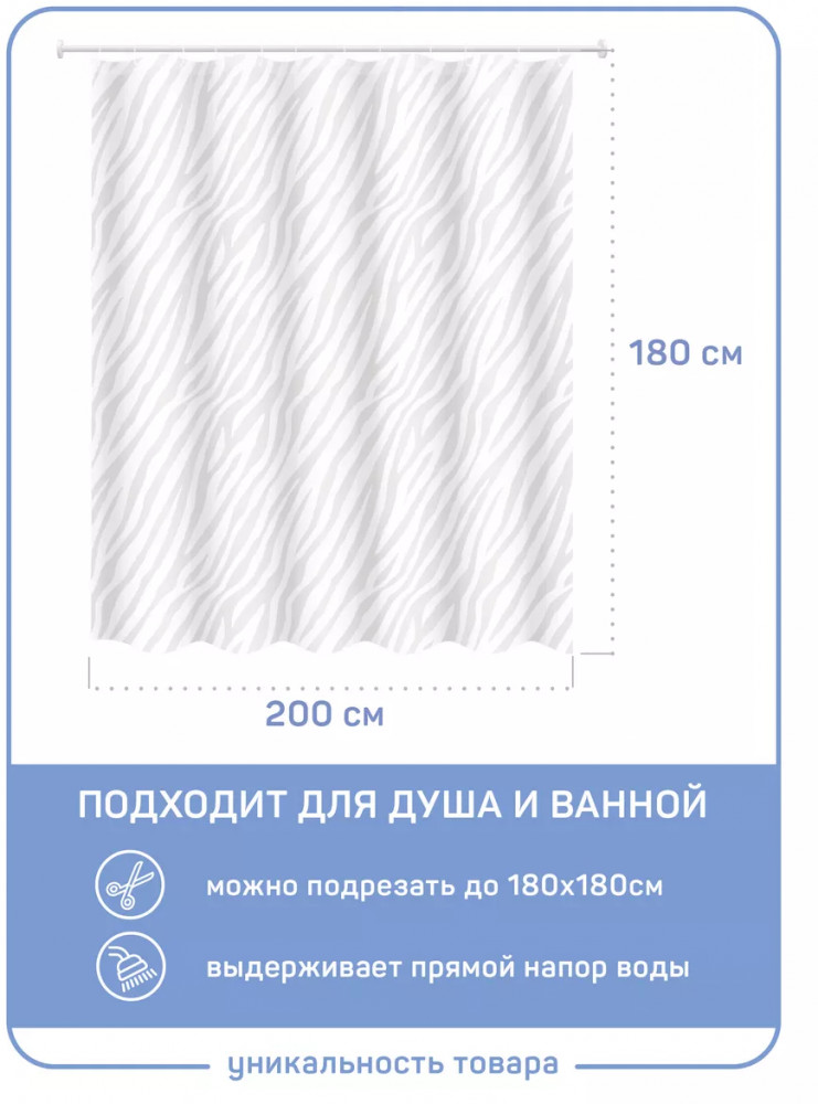 💳 Оплатить за товар можно при получении 🇰🇿 Есть бесплатная доставка по Казахстану от 1 дня 🎁 Копите бонусы с каждой покупки Штора для ванной комнаты, материал PEVA, размером 180×200 см (Увеличенная ширина 200 см и высота 180 см). Прозрачные люверсы и 12 колец в комплекте, без утяжелителя. PEVA — прочная виниловая пленка (как клеенка, но лучше), позволяющая наносить любые принты. Полупрозрачная матовая. Пластиковая занавеска пропускает в душ свет, но не показывает лишнего. Защищена от плесени и грибка. Долговечный и прочный материал шторки, который не содержат ПВХ и хлора, не пахнет, не выделяет токсичных веществ под воздействием пара и высоких температур. Занавес максимально износостойкий и очень прочный. Надежно защищает от брызг и прямого напора воды. Толщина клеенки и антигрибковое покрытие делают декор для ванной долговечным. Материал занавески для душа имеет водоотталкивающие свойства и полностью непромокаемый, защищает от потоков воды любой силы. Не плесневеет и не стоит колом. Разглаживается от горячей воды и пара. Прозрачные люверсы и кольца из пластика не ржавеют и обеспечивают плавное скольжение по карнизу. Можно подрезать под нужный размер. Занавеска для ванной служит надежной перегородкой от брызг в ванной комнате, душе. |