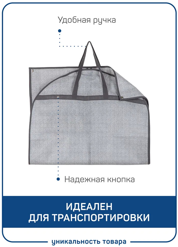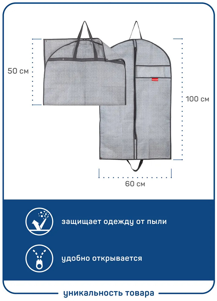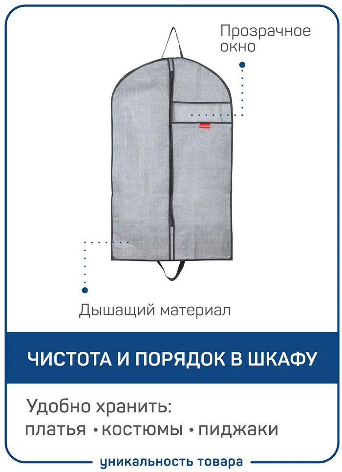 💳 Оплатить за товар можно при получении 🇰🇿 Есть бесплатная доставка по Казахстану от 1 дня 🎁 Копите бонусы с каждой покупки Серия: Впорядке Чехол для одежды 60 × 100 см. Плотный нетканый материал защищает от грязи и пыли, позволяет вещам «дышать». Прозрачное окно помогает легко найти нужную вещь. Продуманный дизайн, напоминающий твид для дорогого мужского костюма, подойдет для любого интерьера. Чехол имеет надежную молнию, прозрачное окошко и вырез для крючков и фиксации на вешалке или плечиках. Сохранит одежду в аккуратном расправленном виде после стирки и химчистки, пригодится для перевозки деловых костюмов и пиджаков, концертных и спортивных костюмов для фигурного катания, гимнастики, танцев и других видов спорта. |