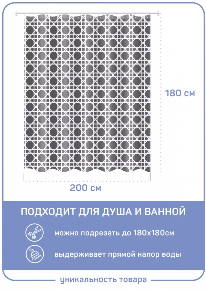 💳 Оплатить за товар можно при получении 🇰🇿 Есть бесплатная доставка по Казахстану от 1 дня 🎁 Копите бонусы с каждой покупки Штора для ванной комнаты, материал PEVA, размером 200*180 см (Увеличенная ширина 200 см и высота 180 см). PEVA — прочная виниловая пленка (как клеенка, только лучше) позволяющая наносить любой рисунок. Полупрозрачная с матовым напылением. Пропускает в душевой уголок свет, но не показывает лишнего. Ее нельзя стирать в машинке, но достаточно ухода мыльным раствором. Можно подрезать под нужный размер по длине и ширине. Прозрачная фурнитура и 12 колец в комплекте, без утяжелителя. Долговечный и прочный материал шторки, который не содержат ПВХ и хлора, следовательно, не пахнет, не выделяет токсичных веществ под воздействием пара и высоких температур. Занавес максимально износостойкий и очень прочный. Надежно защищает от прямого напора воды. Увеличенная толщина клеенки и антигрибковое покрытие делают декор для ванной долговечным. |
