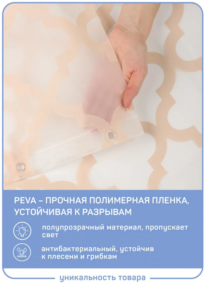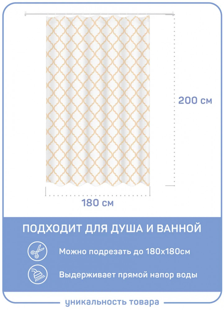 💳 Оплатить за товар можно при получении 🇰🇿 Есть бесплатная доставка по Казахстану от 1 дня 🎁 Копите бонусы с каждой покупки Штора для ванной комнаты, материал PEVA, размером 180×200 см (Увеличенная длина 200 см и ширина 180 см). PEVA — прочная виниловая пленка, позволяющая наносить любые принты. Полупрозрачная с матовым пудровым напылением. Пропускает в душевой уголок свет, но не показывает лишнего. Ее нельзя стирать в машинке, но достаточно ухода мыльным раствором. Можно подрезать под нужный размер. Прозрачные люверсы и 12 колец в комплекте, без утяжелителя. Долговечный и прочный материал шторки, который не содержат ПВХ и хлора, следовательно, не пахнет, не выделяет токсичных веществ под воздействием пара и высоких температур. Занавес максимально износостойкий и очень прочный. Надежно защищает от брызг, легко чистится мягкой губкой с мылом. Увеличенная толщина клеенки и антигрибковое покрытие делают декор долговечным. Материал занавески для душа имеет водоотталкивающие свойства и полностью непромокаемый, защищает от потоков воды любой силы. Не плесневеет и не стоит колом. Легко разглаживается от горячей воды и пара. Прозрачные люверсы из пластика не ржавеют и обеспечивают плавное скольжение ширмы по карнизу. Занавеска для ванной служит надежной перегородкой от брызг в ванной комнате, душе. |