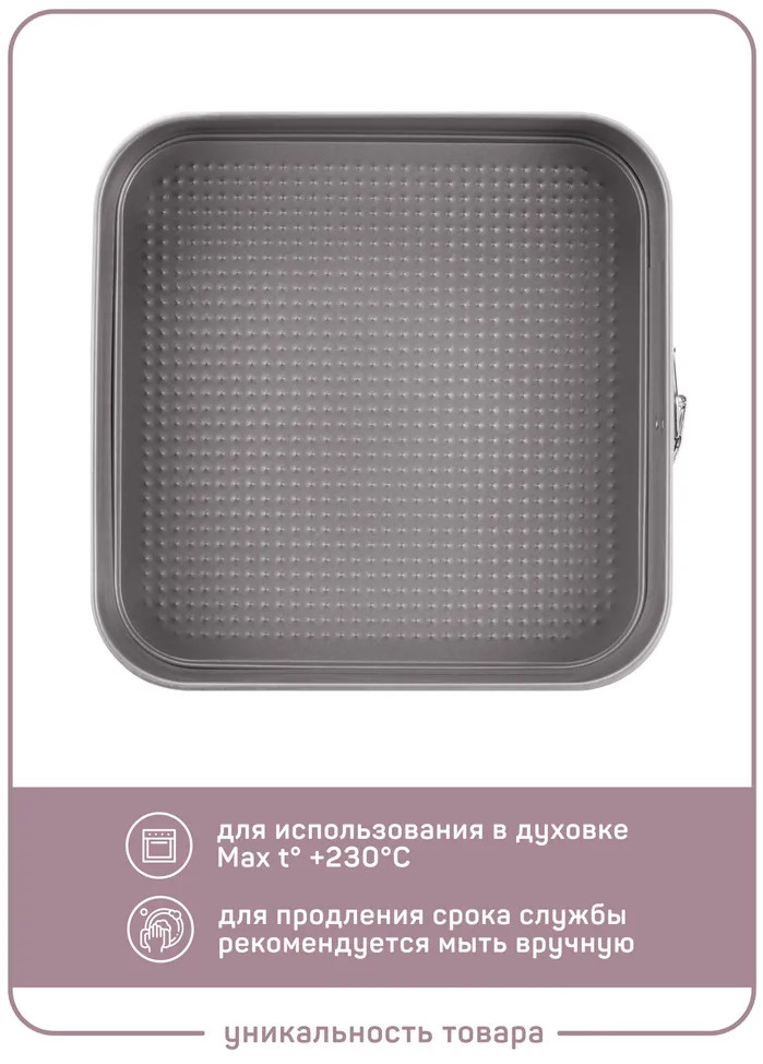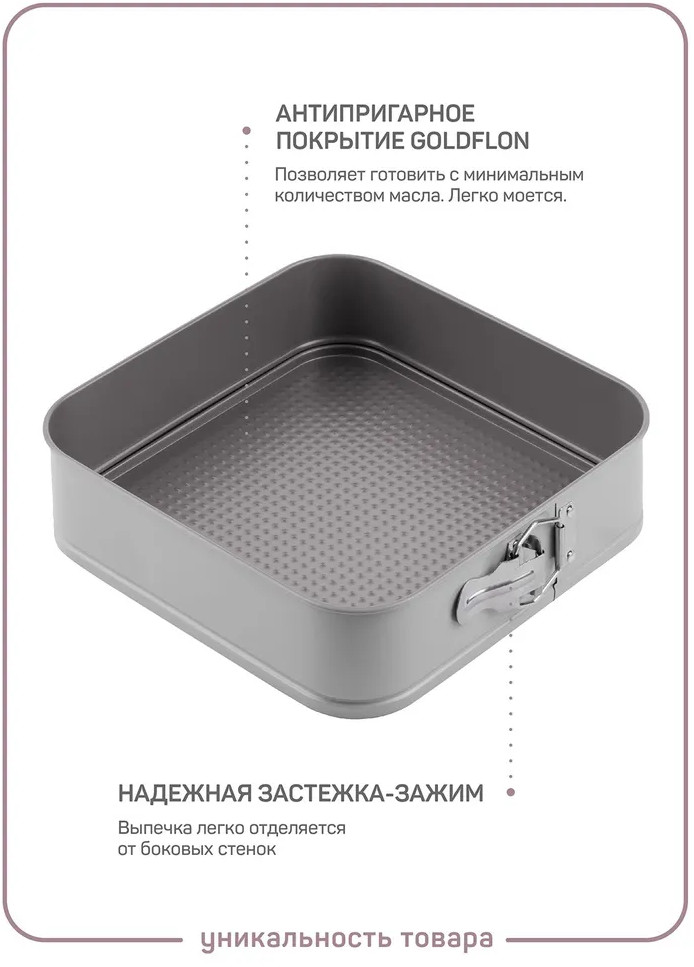 💳 Оплатить за товар можно при получении 🇰🇿 Есть бесплатная доставка по Казахстану от 1 дня 🎁 Копите бонусы с каждой покупки Форма для выпечки и запекания, разъемная. Равномерный прогрев изделия. Антипригарное покрытие Goldflon. Внешнее и внутреннее антипригарное покрытие для легкого ухода. Можно мыть в посудомоечной машине. Для использования в духовке (max t° +230°C). |