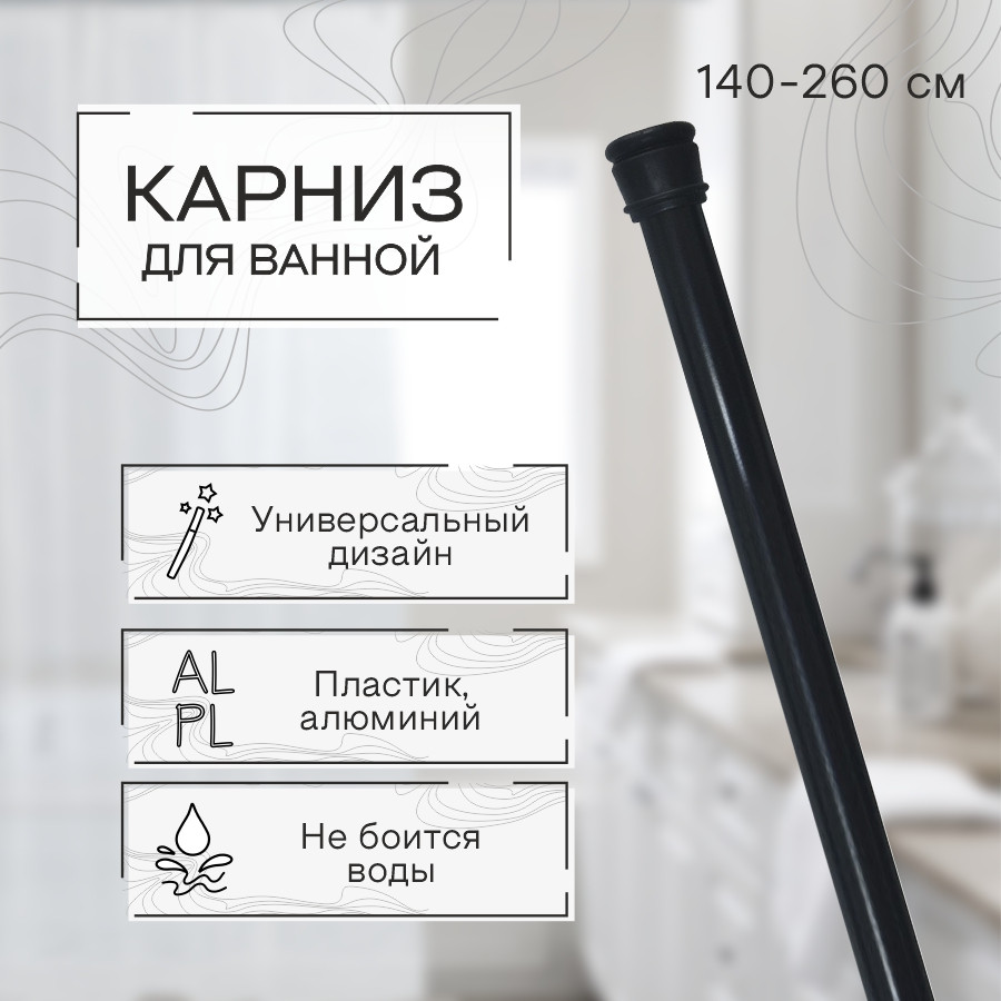 💳 Оплатить за товар можно при получении 🇰🇿 Есть бесплатная доставка по Казахстану от 1 дня 🎁 Копите бонусы с каждой покупки Карниз для ванной — незаменимый элемент ванной комнаты. Он легко и быстро устанавливается без сверления благодаря винтовой системе и не требует применения инструментов, тем самым экономит время и не портит поверхности стен. Благодаря качественному покрытию, цвет карниза сохраняется в течение долгих лет использования и не ржавеет. Карниз выполнен из качественной стали с полимерным покрытием и состоит из двух труб. Карниз выдерживает вес плотных штор. Карниз регулируется на длину от 140 см до 260 см. |