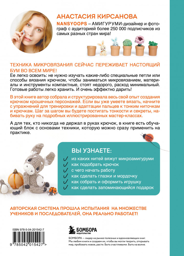 💳 Оплатить за товар можно при получении 🇰🇿 Есть бесплатная доставка по Казахстану от 1 дня 🎁 Копите бонусы с каждой покупки Серия: Больше чем амигуруми Первая в мире книга по микровязанию! Техника разработана российским автором! |