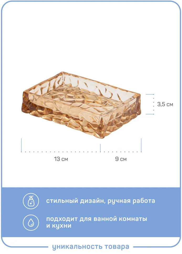 💳 Оплатить за товар можно при получении 🇰🇿 Есть бесплатная доставка по Казахстану 🎁 Копите бонусы с каждой покупки Серия: Jack Stone Подставка-мыльница Jack Stone имеет строгую геометрическую форму. Подойдет как для хранения мелких вещей, так и по прямому назначению для хранения мыла. Высокие края бортика предотвращают падение предметов. Входит в состав коллекции Jack Stone. Все предметы из коллекции Jack-stone выполнены из прозрачного янтарного стекла. Стекло — практичный, гигиеничный, экологически безопасный материал, который не впитывает запахи, влагу. Он долговечен, устойчив к воздействию влаги, мыла и многих химических бытовых средств. Стеклянные изделия легко моются и не теряют эстетичный внешний вид при длительном использовании. |