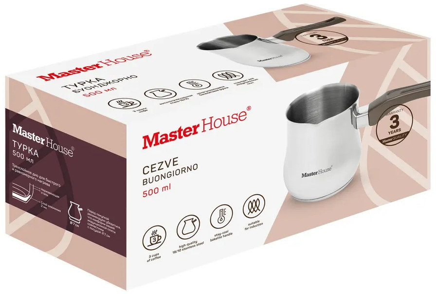 💳 Оплатить за товар можно при получении 🇰🇿 Есть бесплатная доставка по Казахстану от 1 дня 🎁 Копите бонусы с каждой покупки Турка изготовлена из высококачественной нержавеющей стали марки 18/10, что гарантирует безупречный внешний вид, практичность и долговечность. Внешняя полировка — зеркальная. Внутренняя полировка — матовая. Подходит для всех типов плит, включая индукционную (конфорка должна быть совместима с посудой диаметром 7 см). Бакелитовая ручка выдерживает температуру до +140°C. Не подходит для мытья в посудомоечной машине. Диаметр дна 7 см. Диаметр горла 8.3 см. |