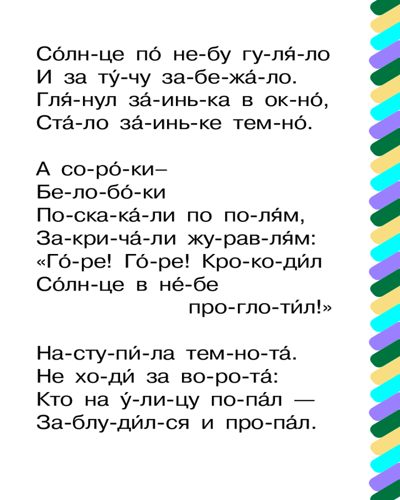 💳 Оплатить за товар можно при получении 🇰🇿 Есть бесплатная доставка по Казахстану от 1 дня 🎁 Копите бонусы с каждой покупки Серия: Сам читаю по слогам Ваш малыш уже знает буквы и его ручки тянутся к книжкам? Покажите ему серию «Сам читаю по слогам». Это книжки небольшого формата, с большими буквами, и все слова разбиты на слоги с ударениями. В этой серии собраны лучшие произведения современных авторов и классиков детской литературы — С. Маршака, С. Михалкова, Э. Успенского, Г. Остера, В. Сутеева и других знаменитых писателей и поэтов. Каждую книгу маленькие мальчики и девочки смогут прочитать САМИ от начала и до конца. А потом будут гордо говорить: «Вот мои первые прочитанные книжки. Хочу читать ещё!» В этой книге малыши прочитают увлекательную сказку знаменитого детского писателя К. Чуковского «Краденое солнце». |