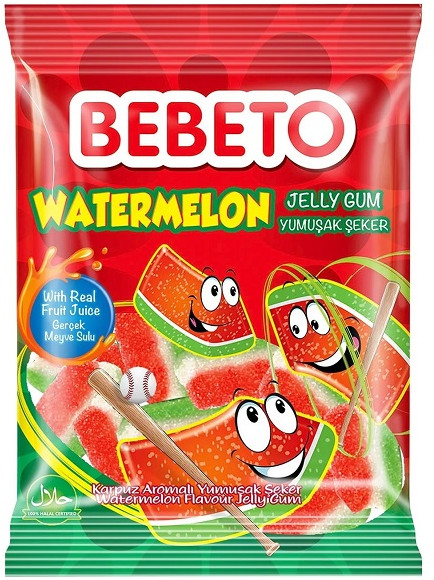 Жевательный мармелад Bebeto — это необычное лакомство для детей и взрослых. Ароматный, вкусный мармелад в виде гамбургеров, хот-догов, пиццы и колы. Упаковку мармелада можно легко взять с собой, чтобы угостить друзей и близких. Мармелад Bebeto не содержит искусственных красителей. Изготовлен на крупнейшей кондитерской фабрике «Kervan» (Турция). Наличие сертификата HALAL (Турция), изготавливается на основе говяжьего желатина.
