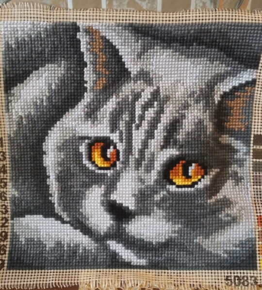 Получила несказанное удовольствие от вышивки! Первый раз вышивала такими объемными нитками, боялась, что не получится;))но все удалось!). Качество набора на высоте. Спасибо магазину за море положительных эмоций! Заменила цвет носа на черный и получился портрет домашнего любимца.