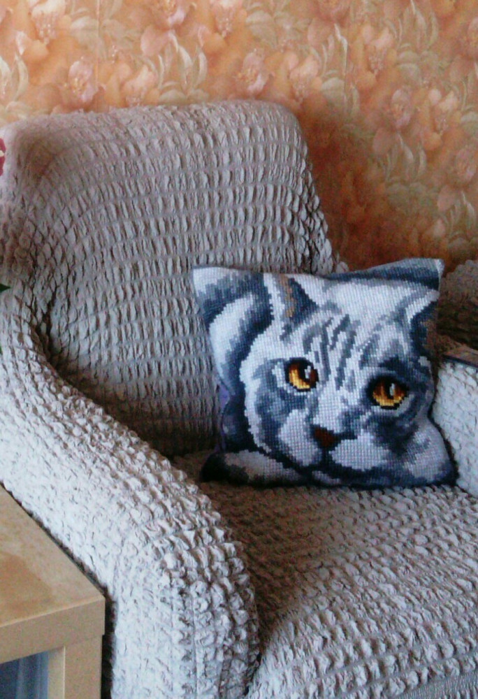 Отличный набор! Сначала подумала, что дороговато, а потом посчитала, сколько выйдет, если все покупать отдельно - страмин, акрил нескольких цветов мотками, да еще подбирать все это не только по цвету, но и по толщине нити, и т. д. А тут и канва с рисунком, и инструкция. И сюжет отличный для меня, кошатницы! А оборотную сторону наволочки сшить не проблема, а можно и готовую купить, здесь же, кстати, да и с наполнителем морочить себе голову не буду, использую имеющиеся дома подушечки. В общем, очень я довольна покупкой!