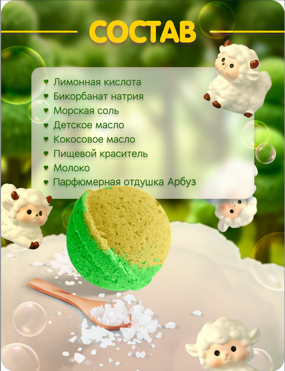 💳 Оплатить за товар можно при получении 🇰🇿 Есть бесплатная доставка по Казахстану от 1 дня 🎁 Копите бонусы с каждой покупки Бурлящий шар для принятия ванн с детской игрушкой ручной работы, с натуральной морской солью и ароматными маслами кокоса и оливы. Купание Вашего ребенка превратиться в волшебство! Просто погрузите бурлящий шар в воду и вода чудесным образом поменяет цвет, а эффект бурления подарит массу впечатлений Вашему малышу, при этом ванна наполниться ароматом парфюмерной композиции, а игрушка находящаяся внутри шара, станет приятным сюрпризом для Вашего ребенка. Нормализует уровень Ph, подходит для всех типов кожи. |