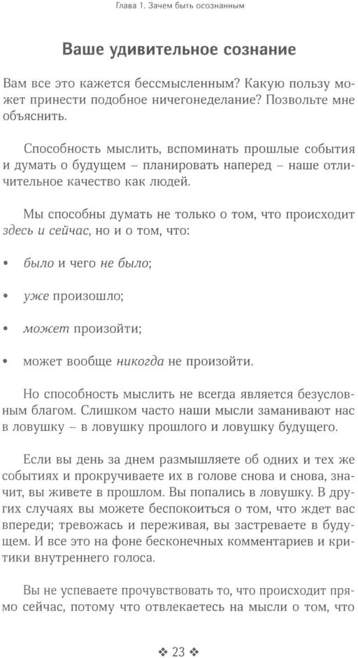 💳 Оплатить за товар можно при получении 🇰🇿 Есть бесплатная доставка по Казахстану от 1 дня 🎁 Копите бонусы с каждой покупки В этой книге эксперт по осознанности Джилл Хэссон объясняет, как вместо того чтобы бездумно проживать свою жизнь на автопилоте и вечно торопиться, вы можете замедлить темп и обрести внутренний покой и равновесие. Осознанность предполагает новые способы мышления и модели поведения, уменьшает стресс и повышает удовлетворенность жизнью. Слишком часто мы не успеваем в полной мере прочувствовать и осознать, что происходит здесь и сейчас. Из этой книги вы узнаете, как стать более осознанным и оставаться в моменте, чтобы жить счастливой полноценной жизнью. |