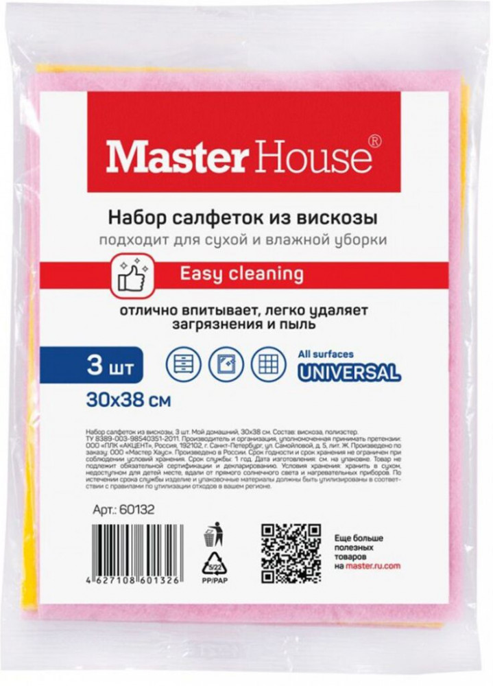 Серия: Мой Набор из 3 салфеток из вискозы. Подходит для сухой и влажной уборки. Отлично впитывает, легко удаляют загрязнения и пыль. |