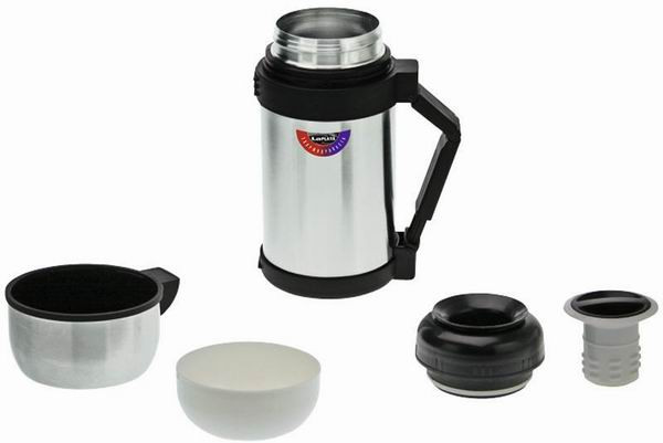 Выполняет как функции термоса для еды (первого или второго), так и термоса для напитков. Это достигается благодаря наличию широкой горловины и специальной универсальной пробки, которая изготовлена из прочного пластика, легко разбирается для мытья и, обладая дополнительной теплоизоляцией, позволяет термосу дольше хранить тепло.