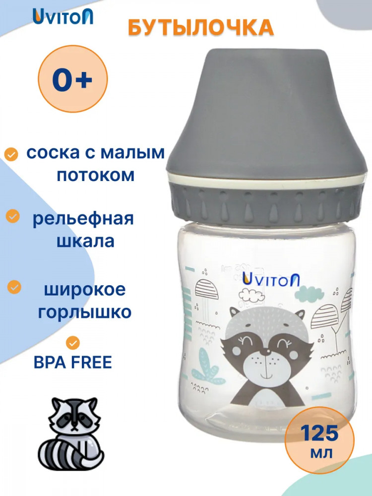 Величина отверстия соски обеспечивает медленный поток, оптимальный для негустого питания: молока и молочных смесей, чая, воды. Для удобства использования бутылочка имеет рельефную мерную шкалу, деления которой строго соответствуют указанному объему. Бутылочка для кормления — прекрасный аксессуар для кормления новорожденного малыша соответствует требованиям безопасности детской продукции ТР ТС- все наши детские товары безопасны и имеют сертификат соответствия.