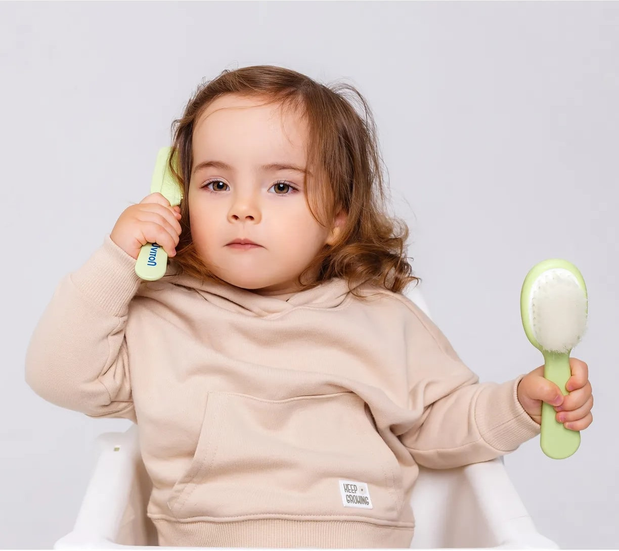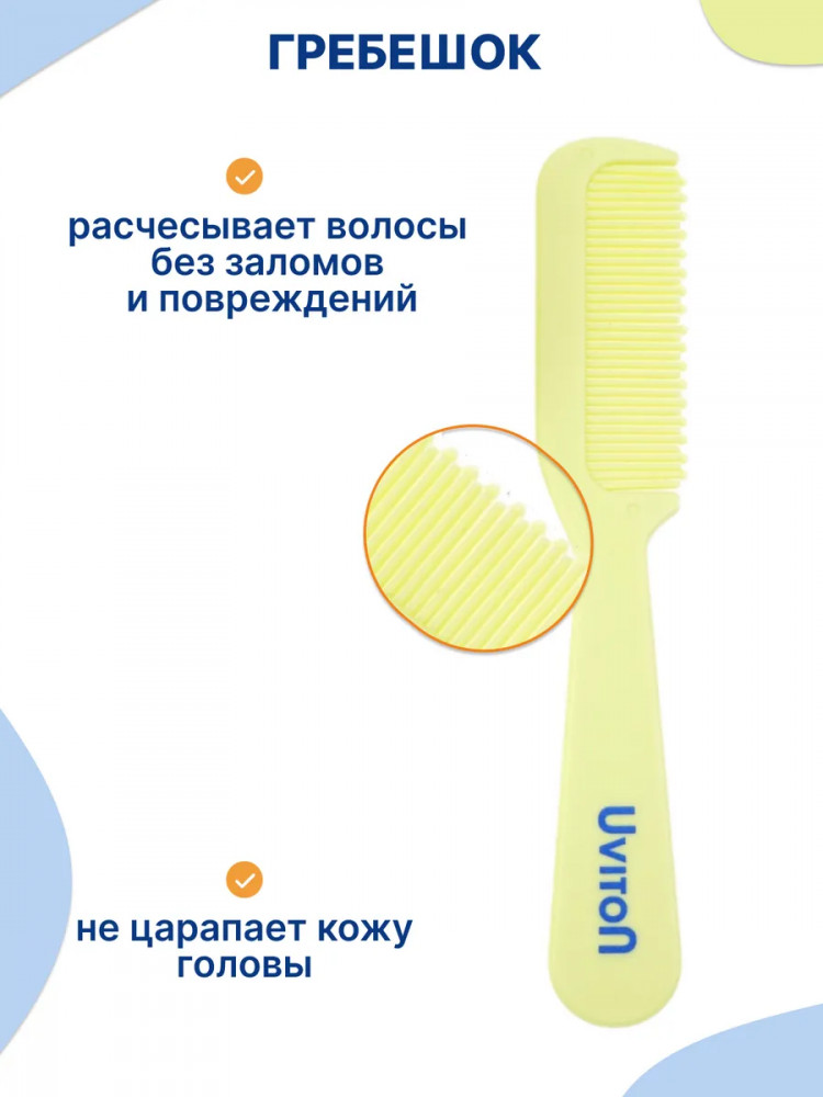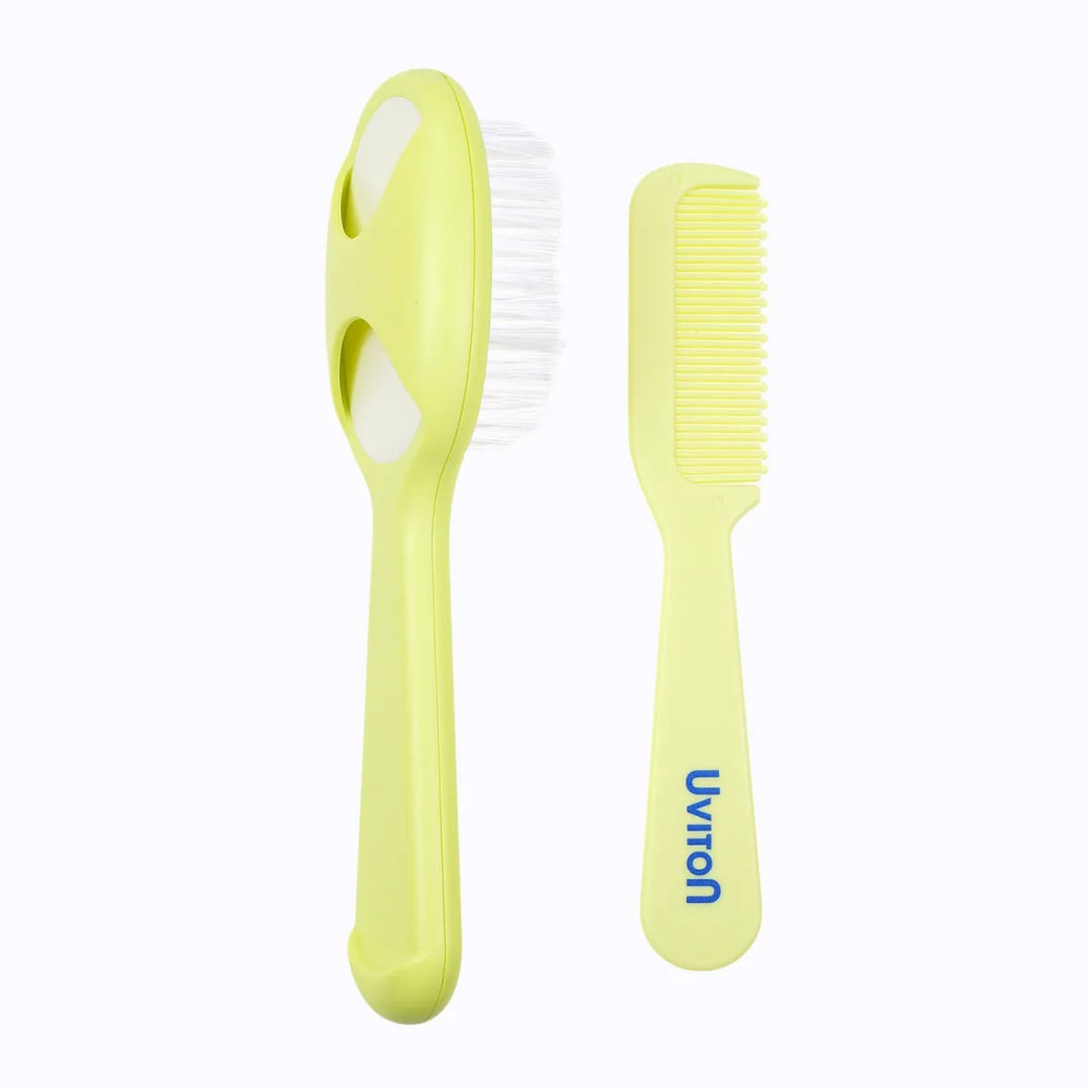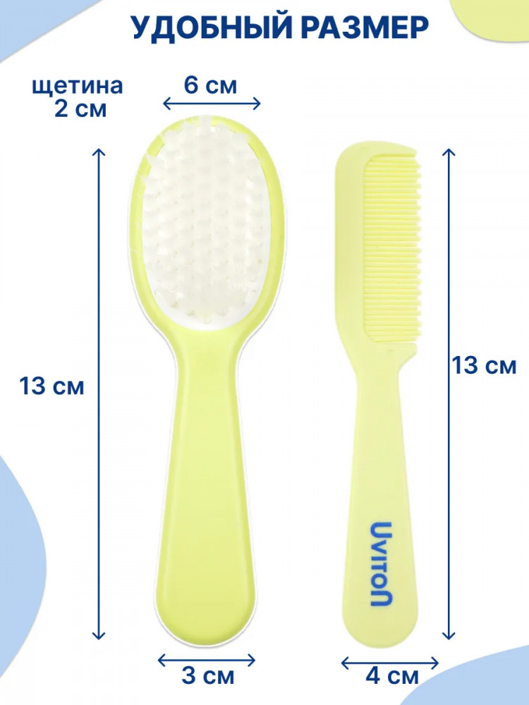 Мягкая щеточка для волос и гребешок от Uviton специально для нежного ухода за детскими волосами. Современный дизайн, эргономичная ручка. Удобное хранение — теперь гребешок не потеряется, его можно прикрепить в щеточке экономя место для хранения аксессуара.