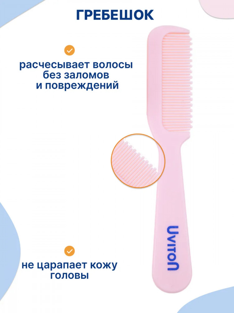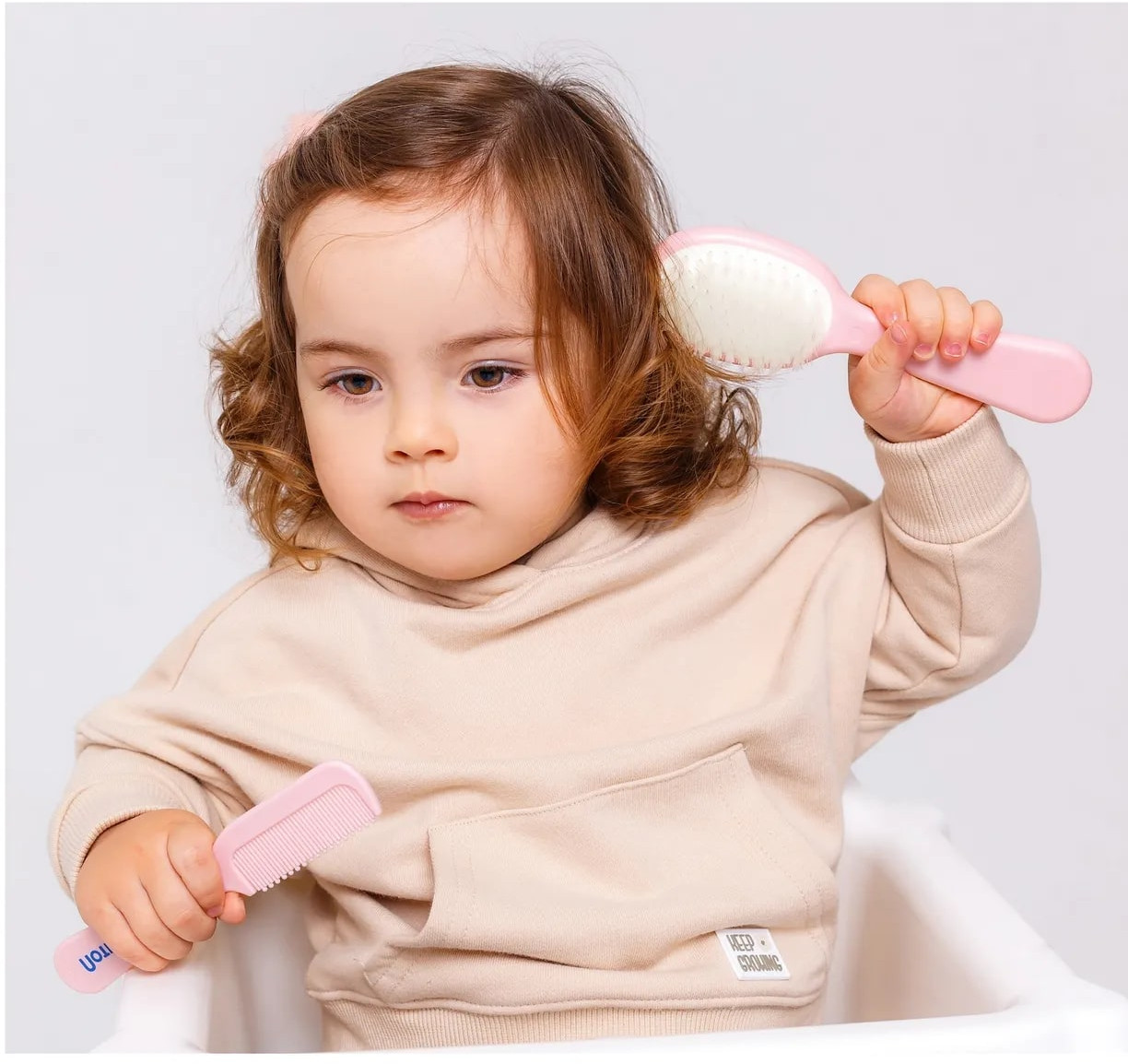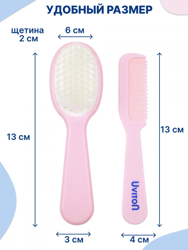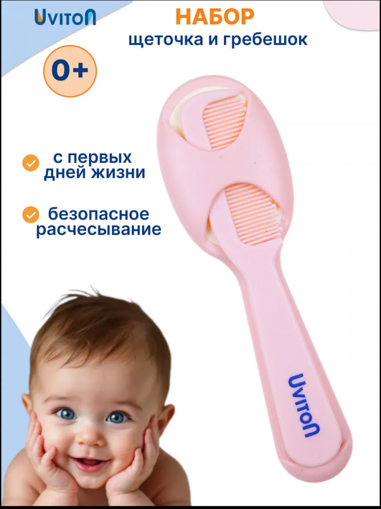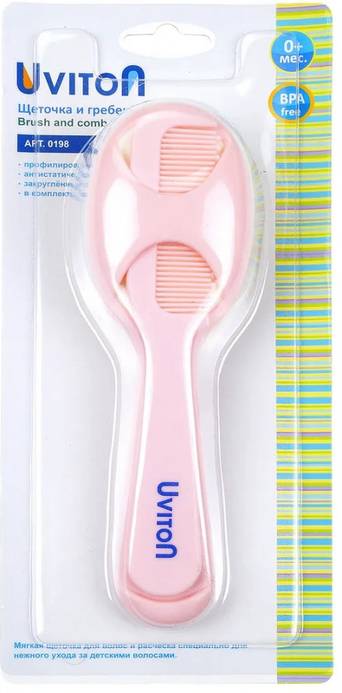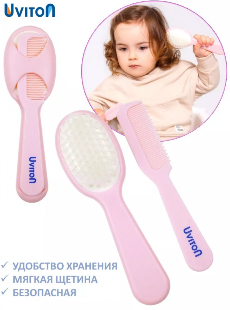 Мягкая щеточка для волос и гребешок от Uviton специально для нежного ухода за детскими волосами. Современный дизайн, эргономичная ручка. Удобное хранение — теперь гребешок не потеряется, его можно прикрепить в щеточке экономя место для хранения аксессуара.