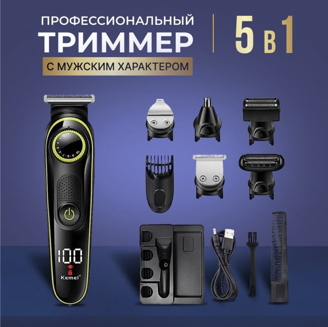 Kemei Триммер многофункциональный 5 в 1В данный момент этот товар отсутствует в продаже. Возможно, у нас найдется аналогичный или похожий товар здесь. Многофункциональный триммер Kemei 5 в 1 — это универсальное устройство для ухода за волосами, бородой и телом. Комплект включает 5 сменных насадок для стрижки, бритья и тримминга, что делает его идеальным для создания любого стиля. Встроенный дисплей показывает уровень заряда батареи, а зарядка через USB обеспечивает удобство использования. Лезвия из высококачественной стали обеспечивают точность и долговечность. Подходит как для дома, так и для профессионального использования. |