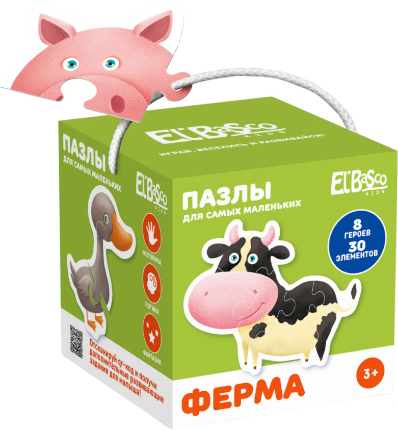 El Basco Пазл «Ферма»В данный момент этот товар отсутствует в продаже. Возможно, у нас найдется аналогичный или похожий товар здесь. Пазлы для самых маленьких — это пазы с крупными деталями для развития мелкой моторики рук, логики, памяти, мышления и расширения словарного запаса у малышей. Пазлы помогут в игровой форме изучать животных, придумывать истории о них и запоминать части тела и учить звуки. Для ребенка это идеальный пазл — крупные детали легко брать в руку малышу, они не теряются, а также это компактная и удобная игра в дорогу или в путешествие. Набор состоит из 30 пазловых элементов, которые складываются в 8 ярких картинок. |