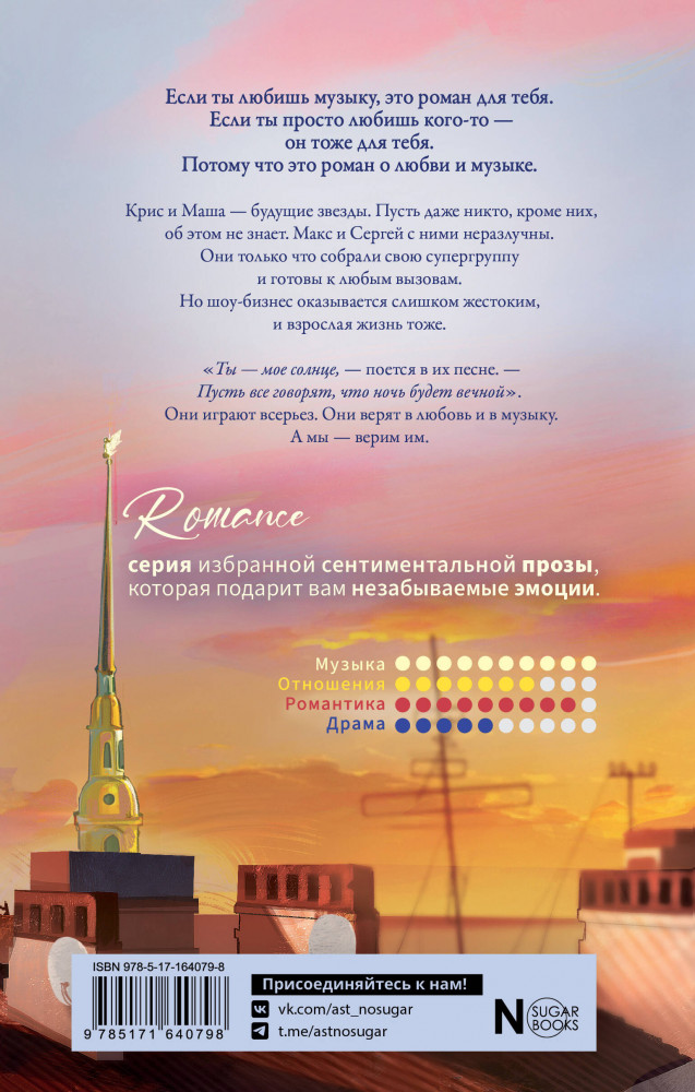 💳 Оплатить за товар можно при получении 🇰🇿 Есть бесплатная доставка по Казахстану от 1 дня 🎁 Копите бонусы с каждой покупки Серия: NoSugar. Романтика Если ты любишь музыку, это роман для тебя. Если просто любишь кого-то — он тоже твой. Потому что это роман о любви и музыке. Крис и Маша — будущие звезды. Пусть даже никто, кроме них, об этом не знает. Макс и Сергей с ними неразлучны. Они только что собрали свою супергруппу и готовы к любым вызовам. Но шоу-бизнес оказывается слишком жестоким, и взрослая жизнь тоже. Они играют всерьез. Они верят в любовь и в музыку. А мы — верим им. |