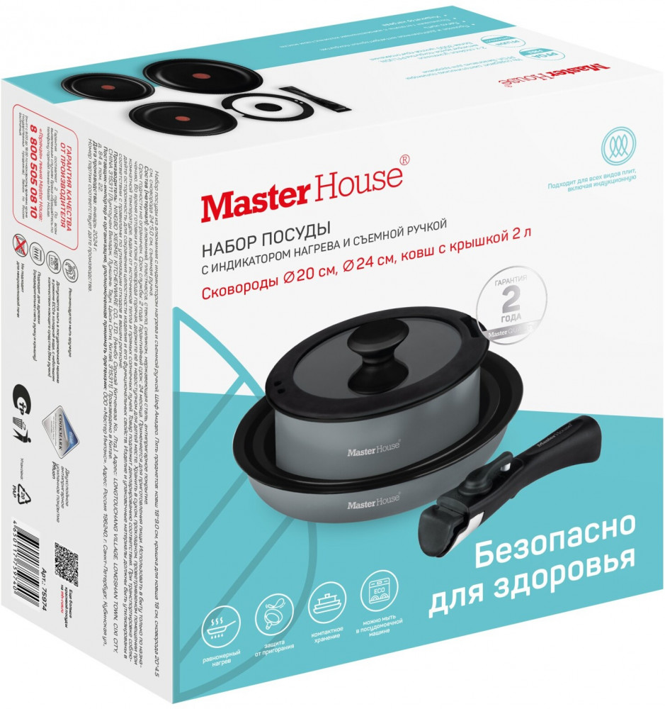 Master House Набор посуды из сотейников и ковша с крышкой и съемной ручкой «Шеф Амадео»-20% +784