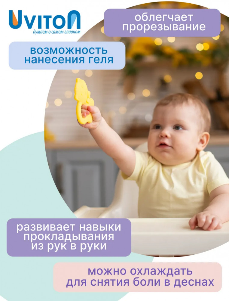 Uviton Прорезыватель силиконовый «Котик»
